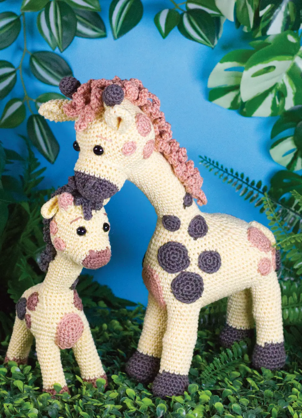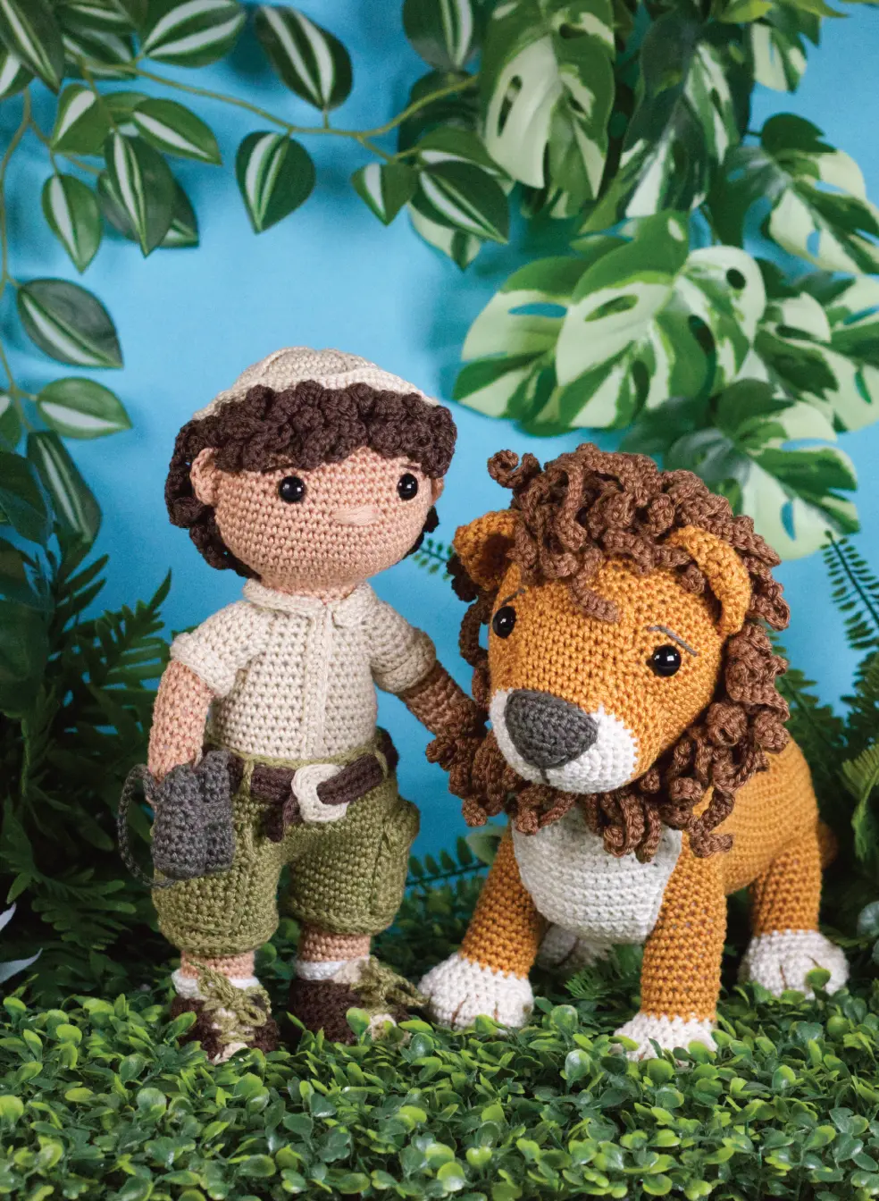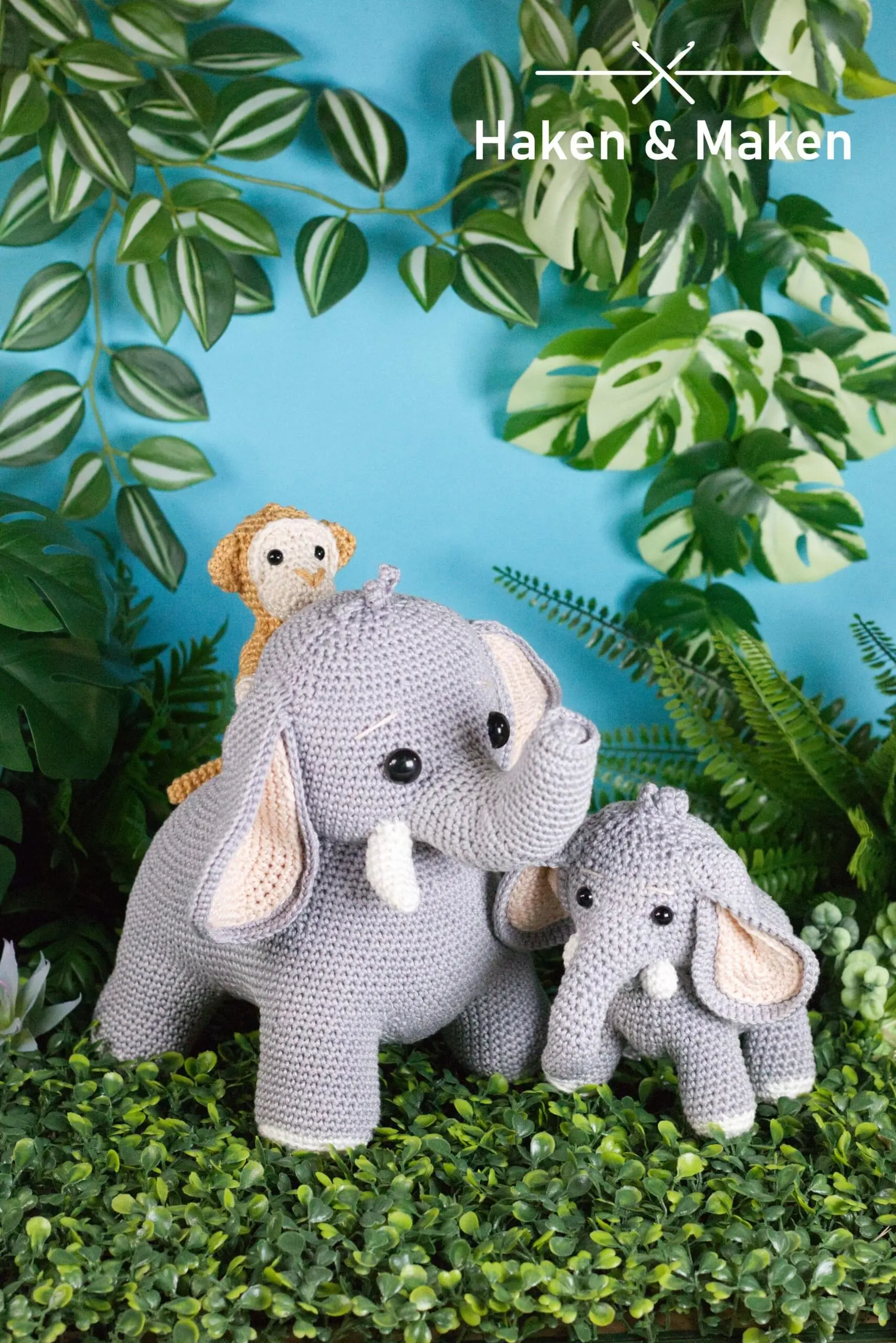 Haak en Maak je eigen Jungle! In dit boek gaan Jilani en Jamilla op safari en komen de ondeugende aapjes Mike en Mael tegen. Ook de patronen van de lieve maar vooral stoere leeuwen Alex en Amir staan in het boek. Anouk het baby olifantje houdt de staart van haar moeder stevig vast om niet te verdwalen en de giraffen Gerrit en gijsje staan op de uitkijk en knabbelen ondertussen aan een paar heerlijke blaadjes. En natuurlijk is daar ook de Jungle jeep! Gijsje, Amir, Anouk en Mael houden zich stevig vast. De jeep kan je haken met of zonder muziekdoosje en de jeep staat natuurlijk geweldig op elke jungle kamer of…misschien is het wel je pronkstuk op een stoere luiertaart?