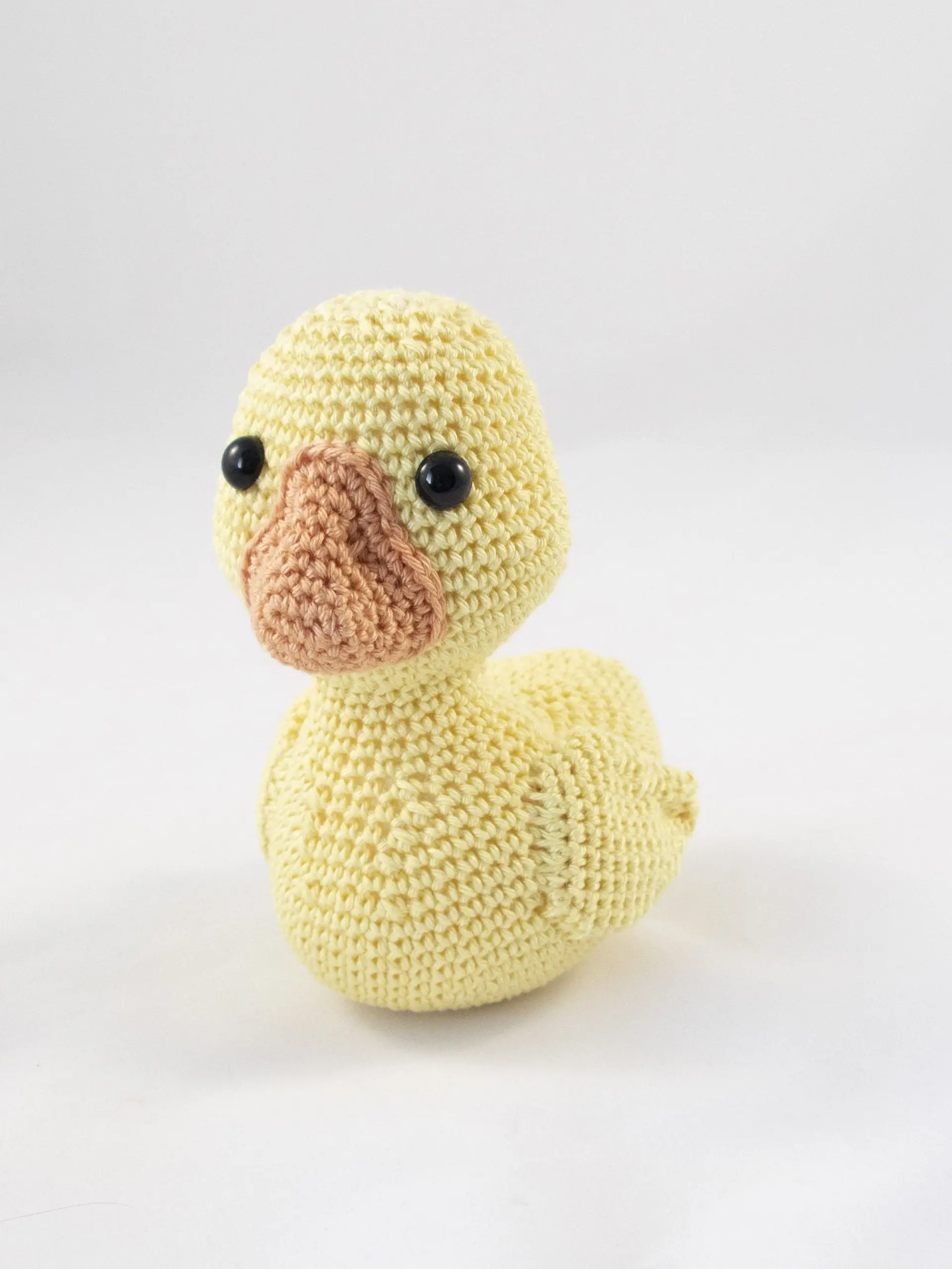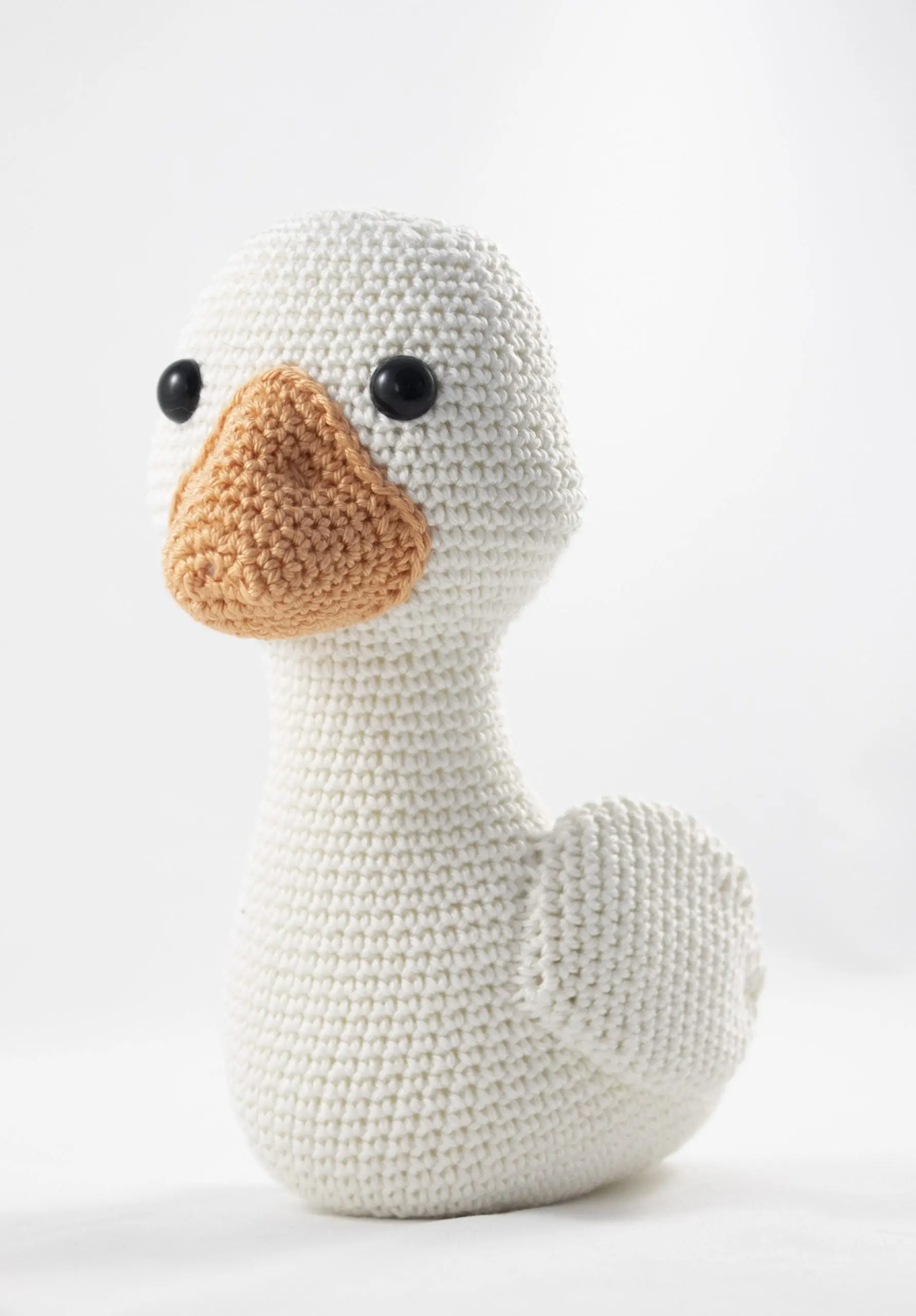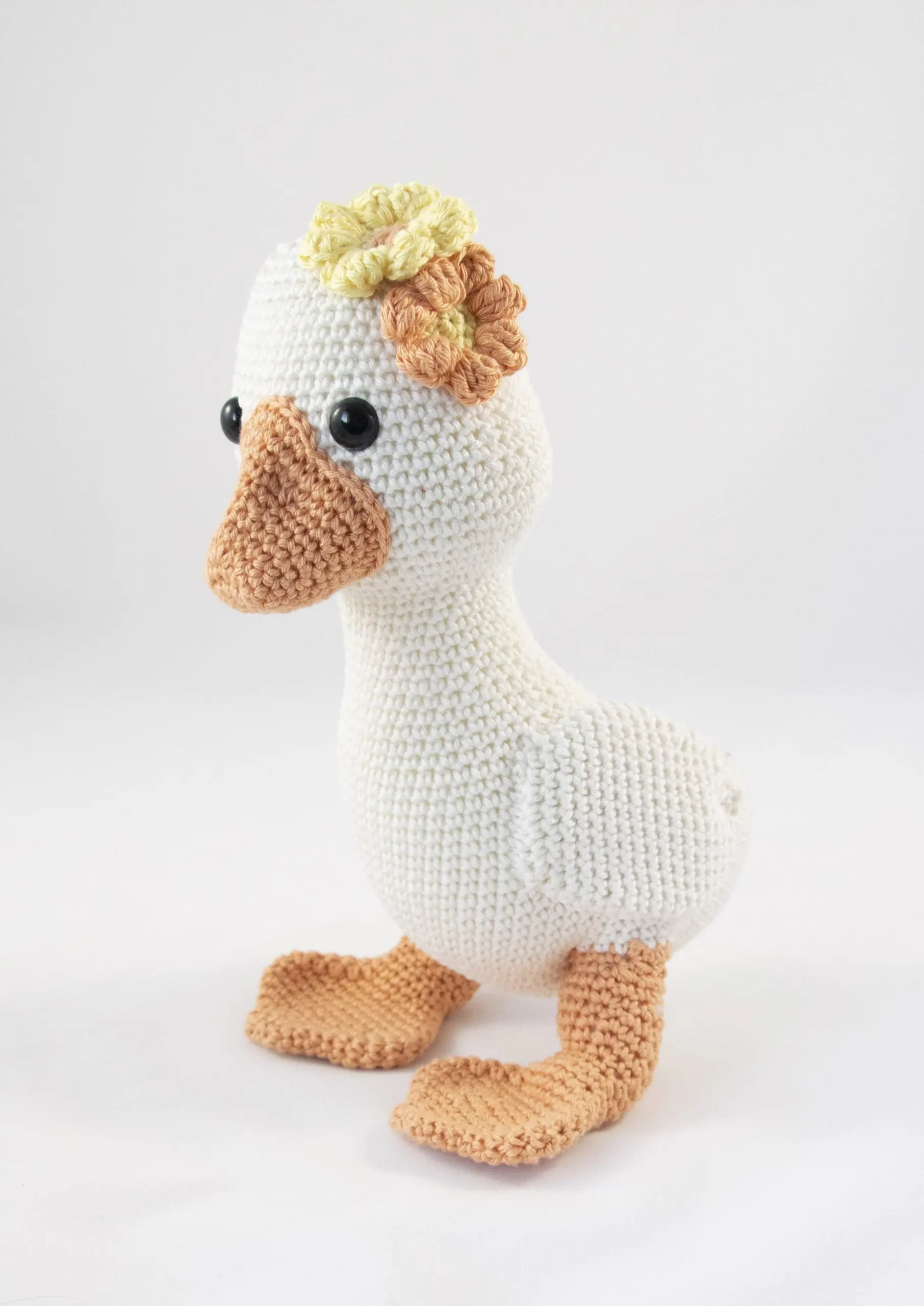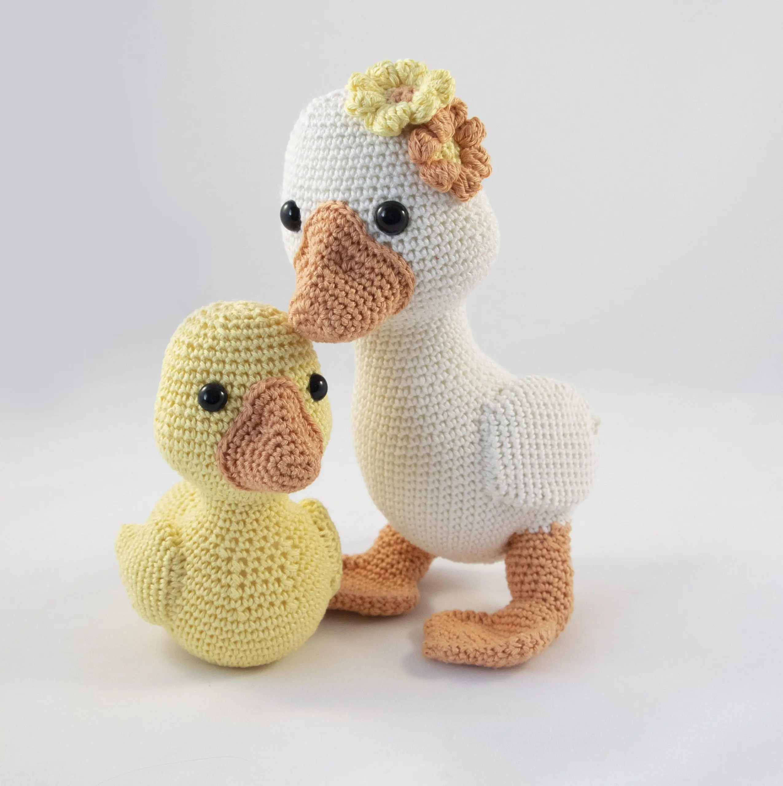 Elaine wordt ongeveer 24 cm hoog, haar baby eendje wordt ongeveer 12,5 cm hoog.