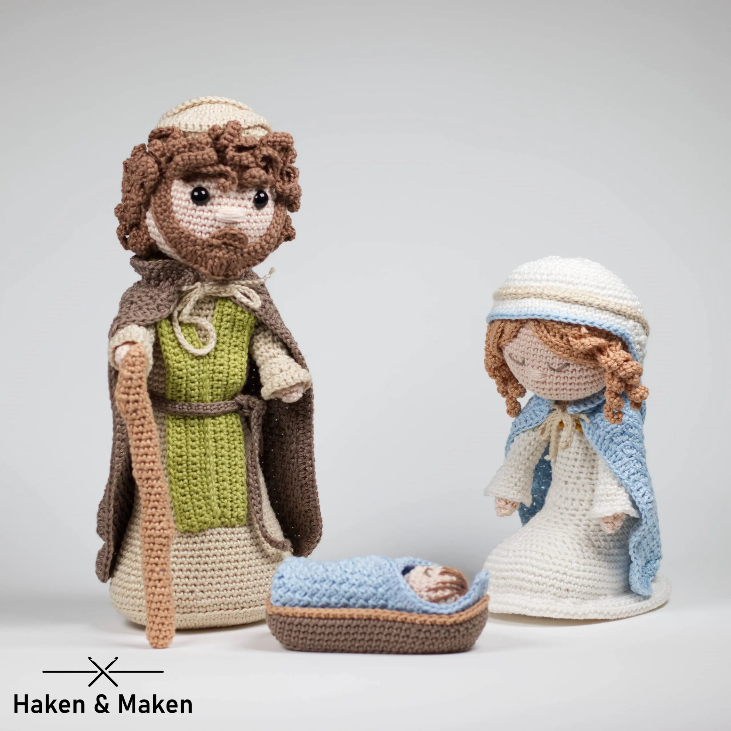 Met dit pakket kan je Jozef, Maria en het kindje Jezus haken en maken.