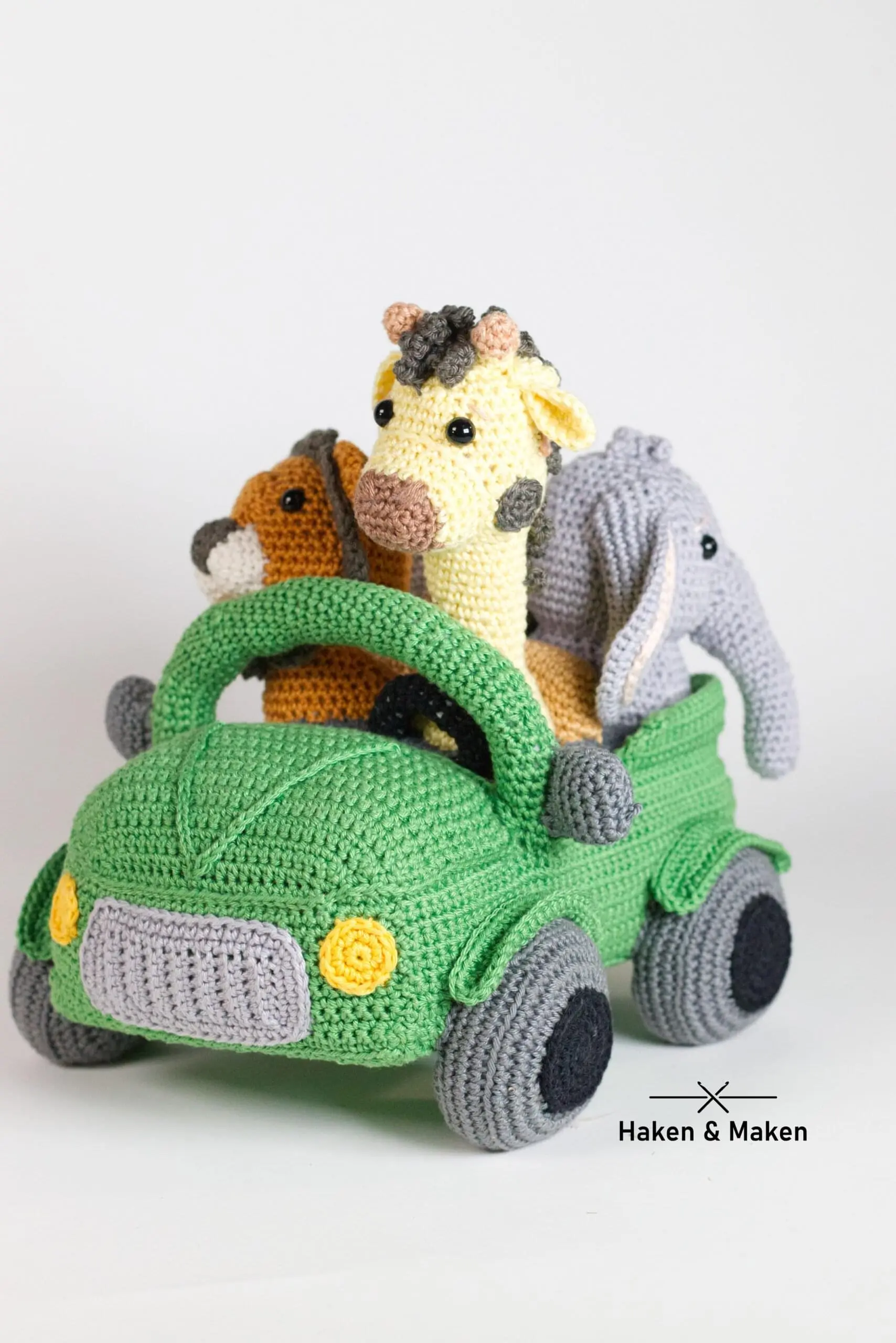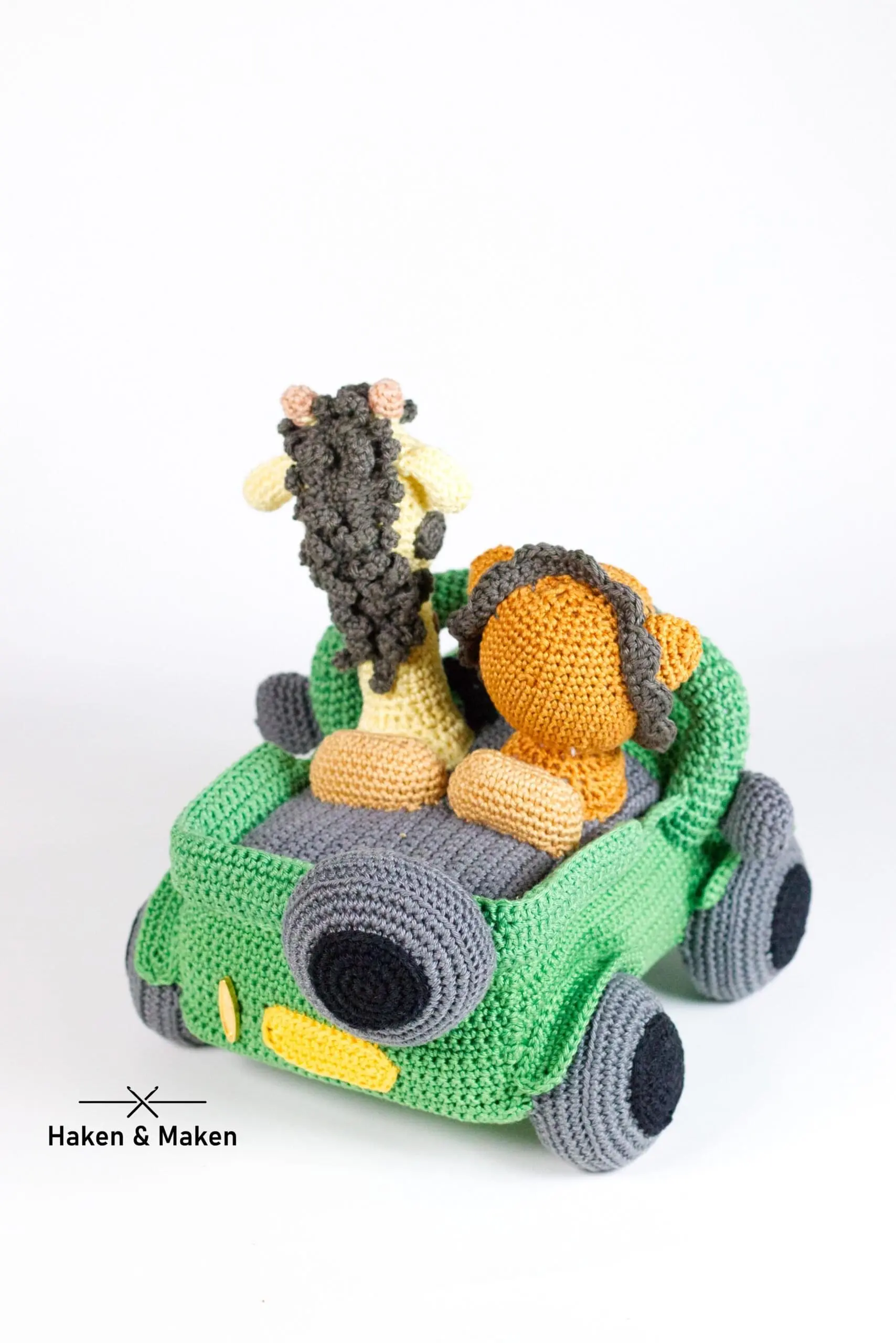 De Jungle jeep wordt ongeveer 25 cm hoog en 36 cm lang wanneer hij gehaakt is met de aangegeven haaknaald.