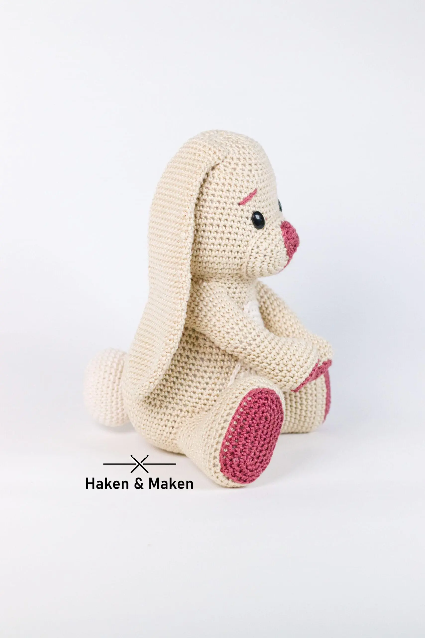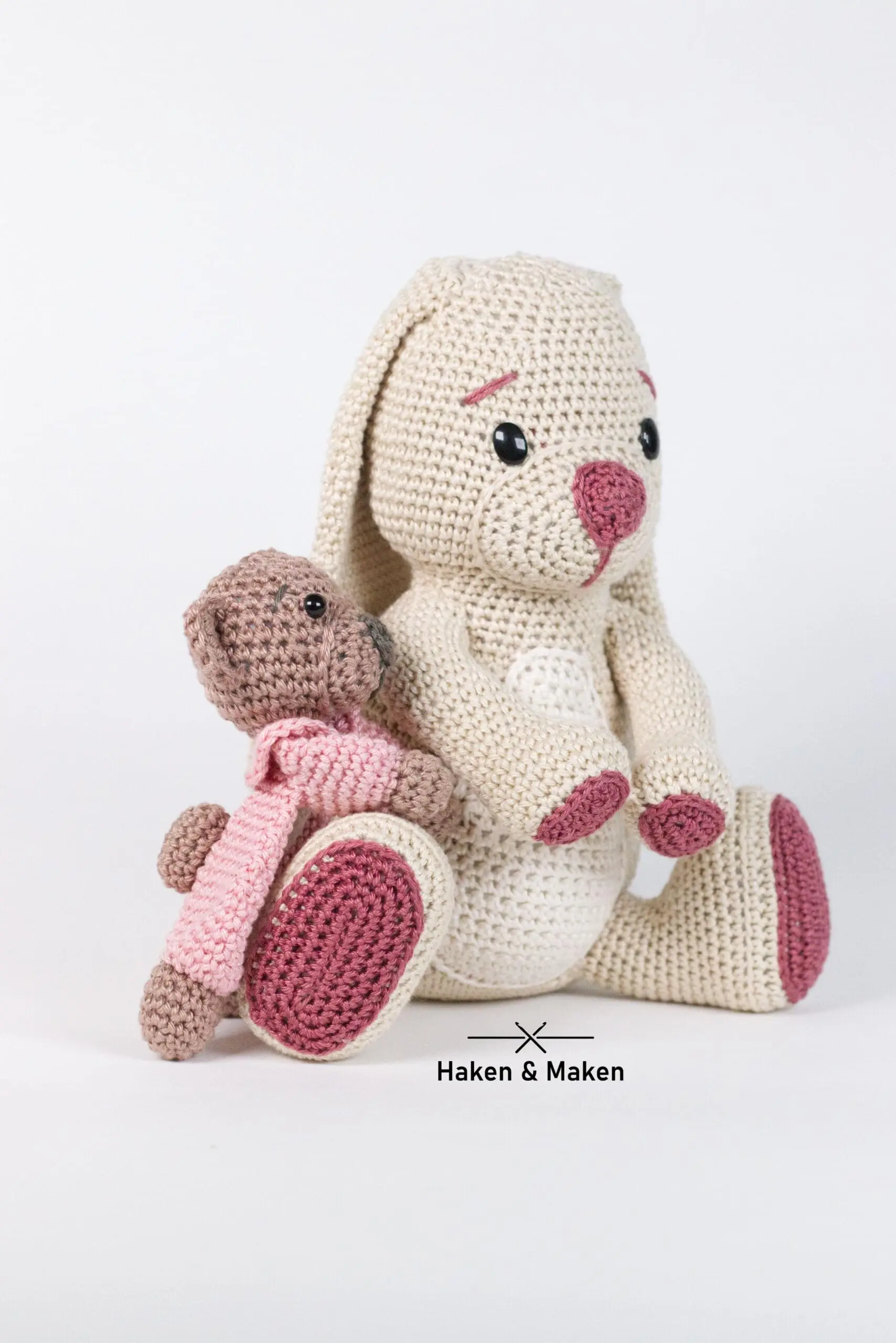 Luna wordt ongeveer 21cm hoog en het beren knuffeldoekje is 12,5 cm hoog wanneer zij gehaakt worden met de aangegeven haaknaald.