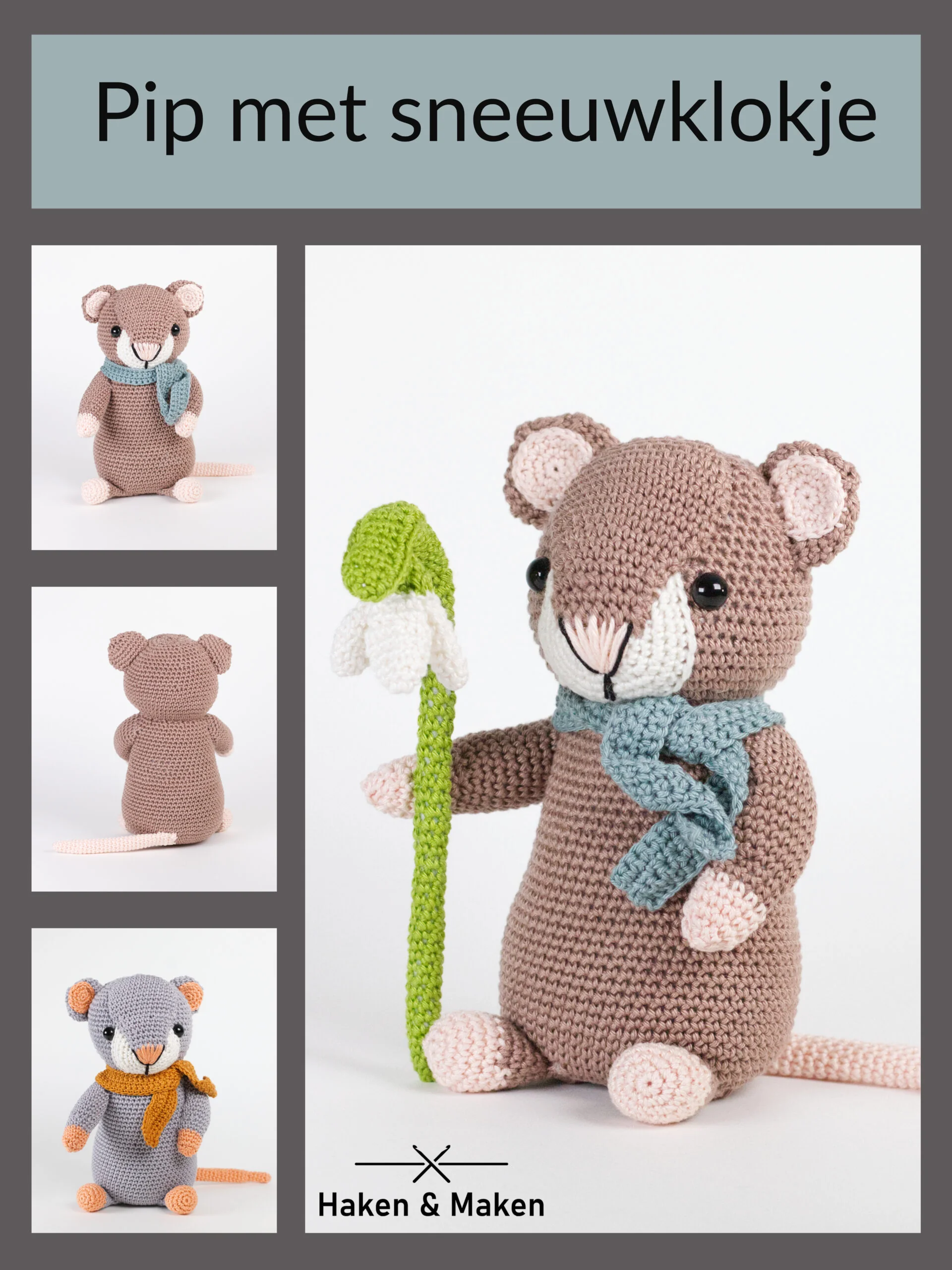Met dit haakpatroon kan je muisje Pip met zijn sneeuwklokje haken en maken.