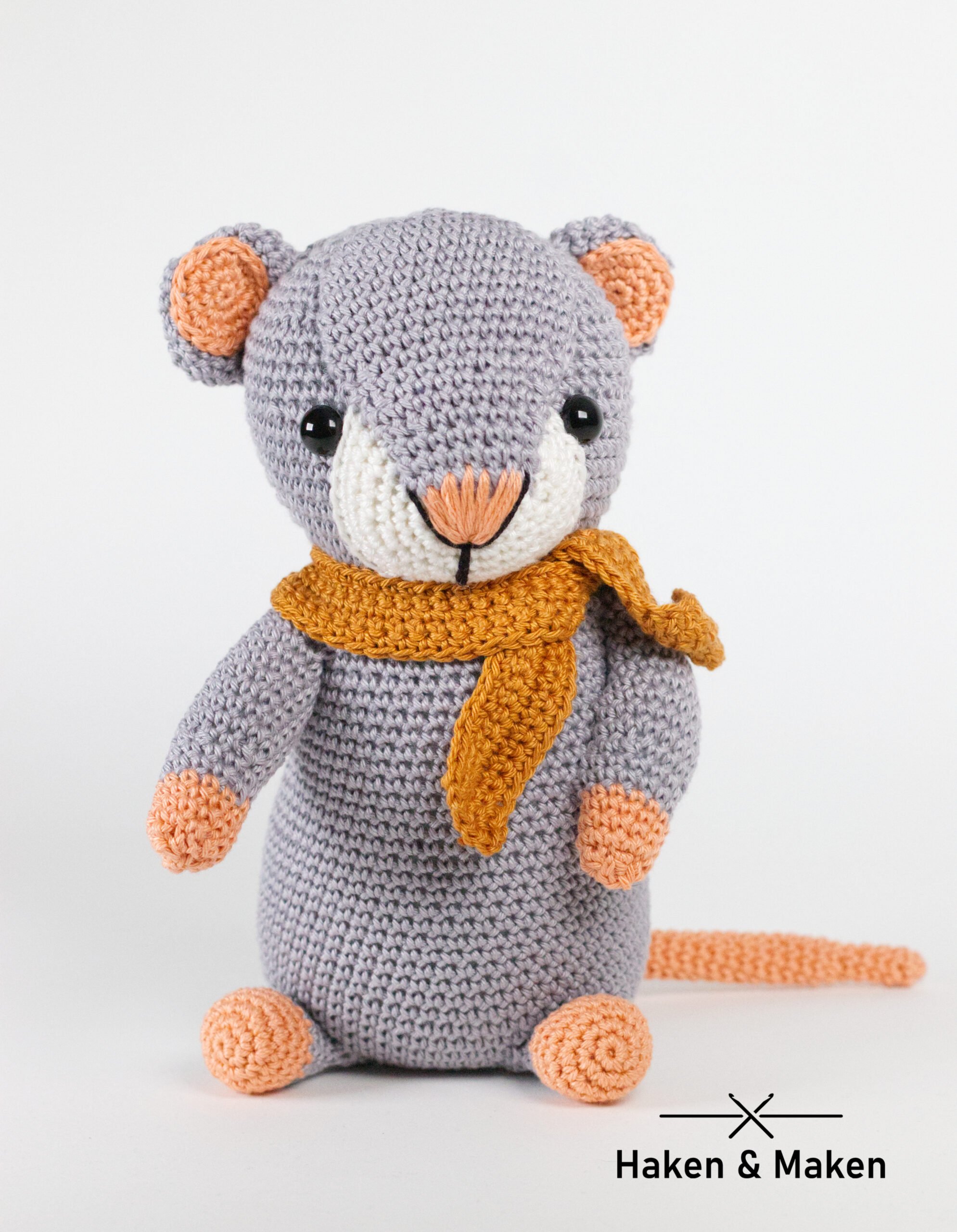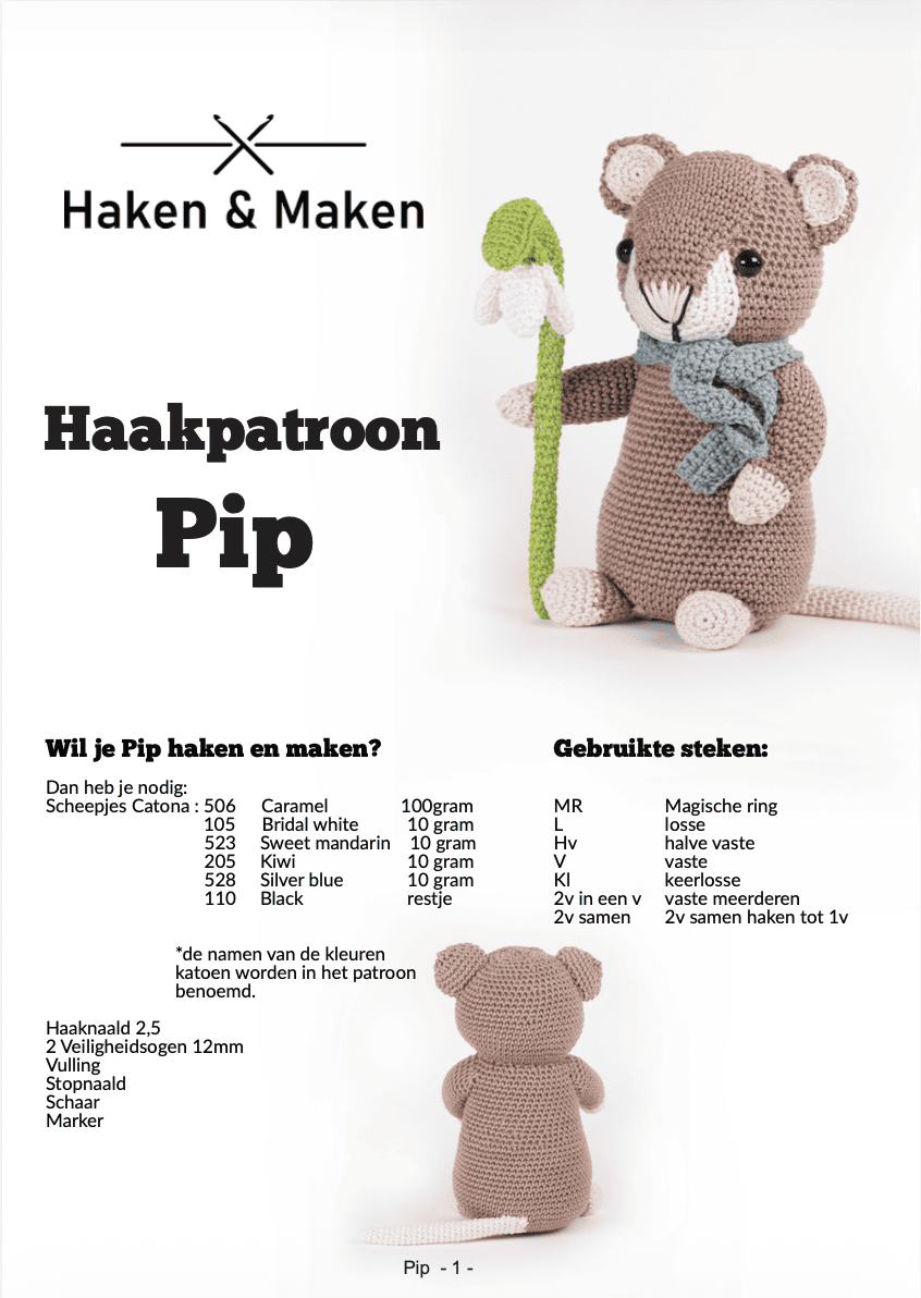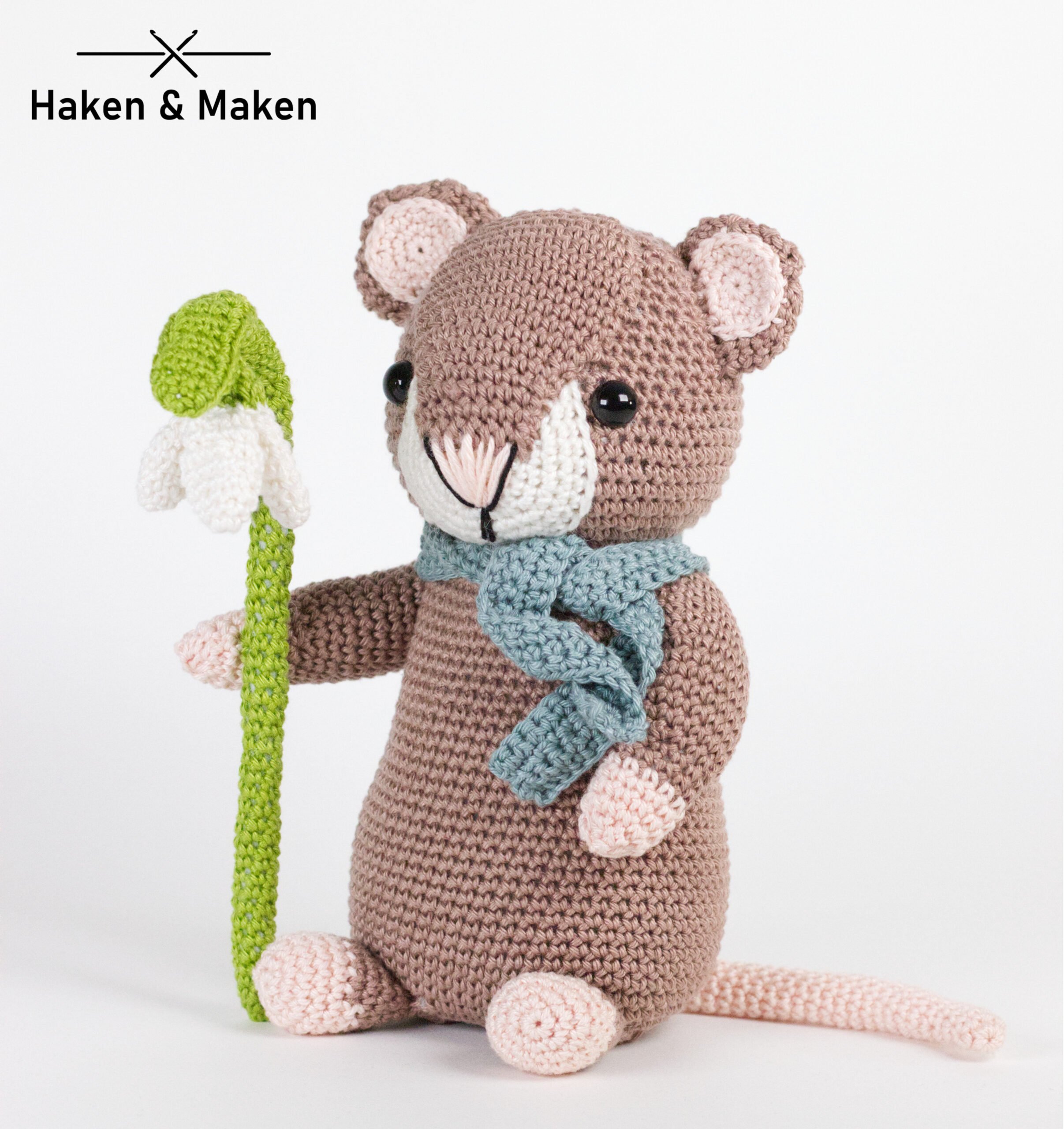 Met dit haakpatroon kan je muisje Pip met zijn sneeuwklokje haken en maken.